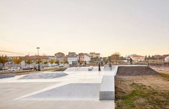 成排的綠樹為滑板公園提供必要的樹蔭遮擋,也在滑板區與其他公共空間之間劃定界限,傾斜的坡道以綠植鋪面,分層的場地為滑板節及各種體育活動提供了理想的場地。綠植覆蓋避免了一些不受歡迎的涂鴉同時增加美感,花崗巖巧妙的圍合滑板區域。